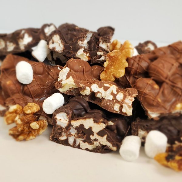 Fresh chopped walnuts and marshmallows are smothered in our dark chocolate. Our chocolate is free of hydrogenated...