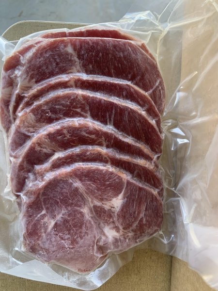 Bone in chops, sparerib, shoulder roasts, bacon, bacon rind, Italian sausage