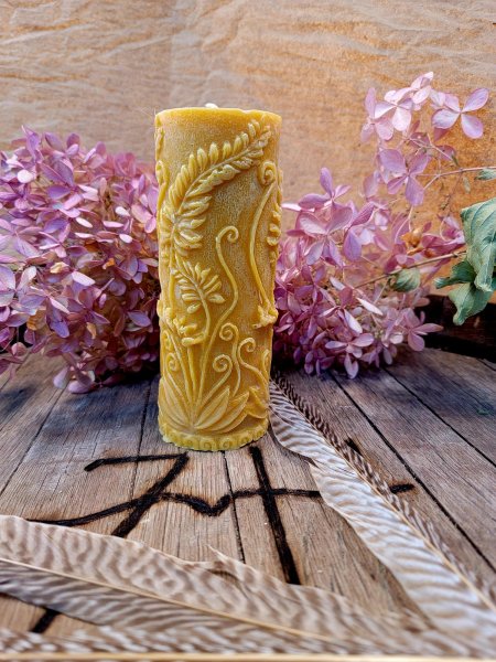 A generous 1‑lb pillar candle poured from pure, naturally aromatic beeswax and adorned with delicate fern fronds. Its...