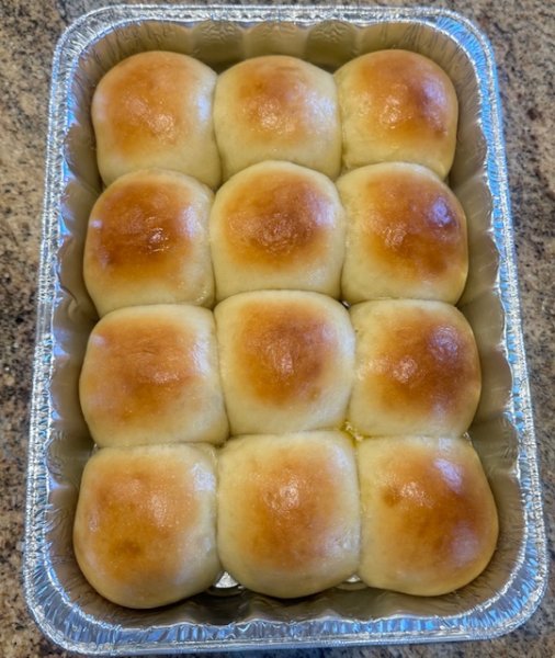 Soft, fluffy sourdough dinner rolls! The perfect addition to any meal! Comes in a tray of 12.
